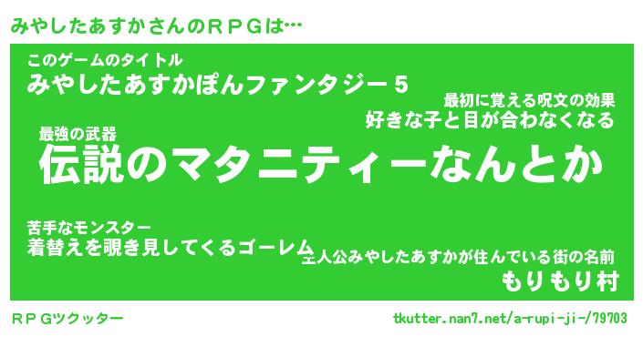 | ファンタジー風あだ名 | 『ミヤフェル』『ファントムミヤス』 |