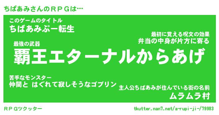 | 男性向けラノベタイトル風あだ名 | 『チバアミアートオンライン』 |