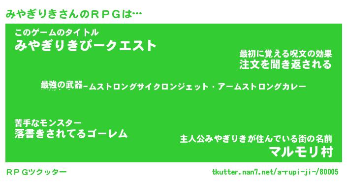 | ファンタジー風あだ名 | 『ミヤフェル』『エターナルミヤギリキー』 |