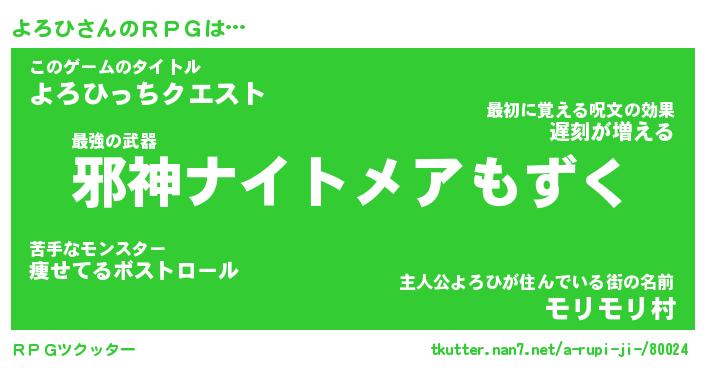| 男性向けラノベタイトル風あだ名 | 『ヨロヒアートオンライン』 |