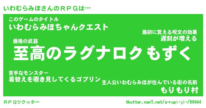 | 男性向けラノベタイトル風あだ名 | 『イワムラミホアートオンライン』 |
