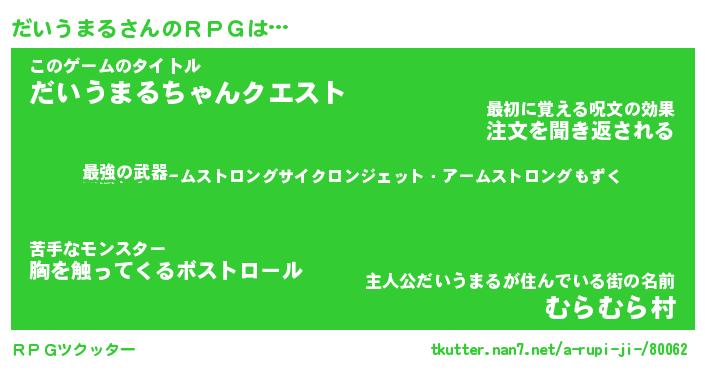 | 男性向けラノベタイトル風あだ名 | 『ダイウマルアートオンライン』 |