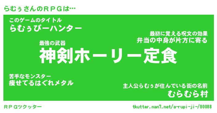 | 男性向けラノベタイトル風あだ名 | 『らむぅの憂鬱』 |