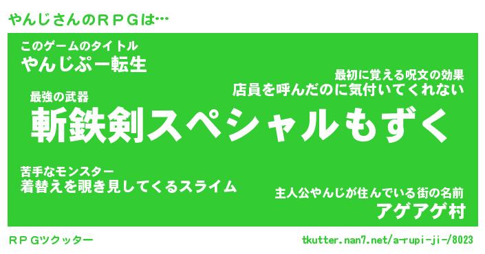 | 男性向けラノベタイトル風あだ名 | 『やんじの憂鬱』 |