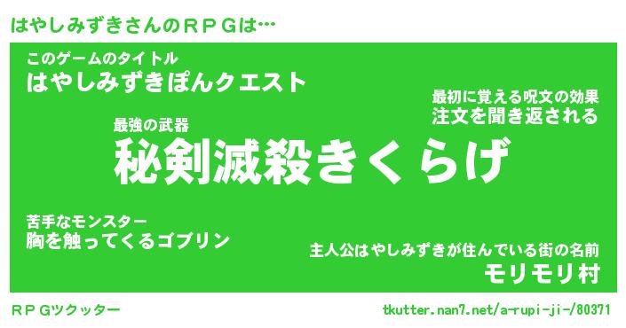 | 胡散臭い通販商品みたいなあだ名 | 『必ず成功する霊験あらたかなお札…その名も「はやしみずき」』 |