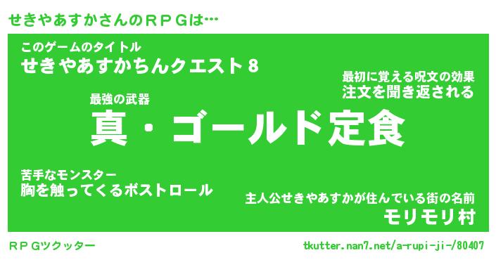 | 胡散臭い通販商品みたいなあだ名 | 『億万長者になれる水晶球…その名も「せきやあすか」』 |