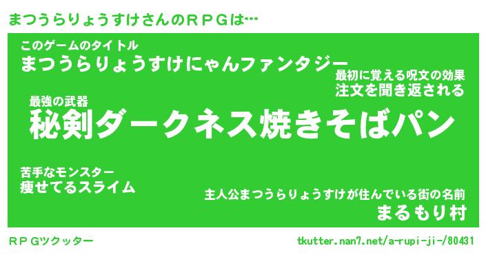 | 胡散臭い通販商品みたいなあだ名 | 『必ず成功する水晶球…その名も「まつうらりょうすけ」』 |