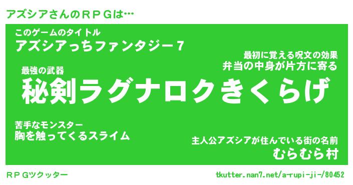 | 料理風あだ名 | 『節約★アズシアと油揚げの玉子丼』 |