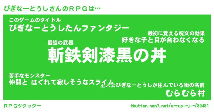 | 男性向けラノベタイトル風あだ名 | 『びぎなーとうしの憂鬱』 |