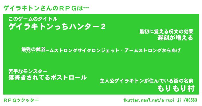 | 男性向けラノベタイトル風あだ名 | 『ゲイラキトンの憂鬱』 |
