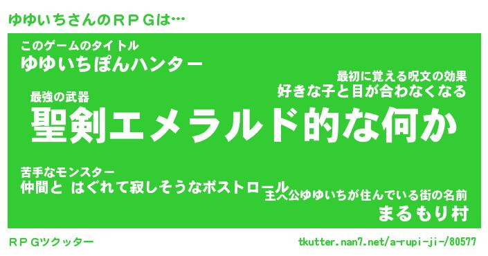 | ファンタジー風あだ名 | 『ユユフェル』『エターナルユユイチー』 |
