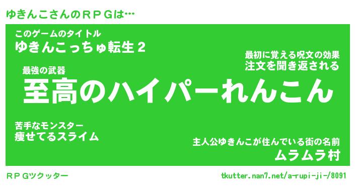 | 男性向けラノベタイトル風あだ名 | 『ユキンコアートオンライン』 |