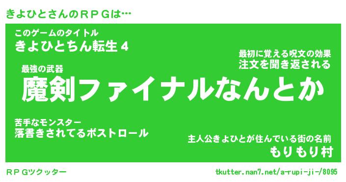 | 男性向けラノベタイトル風あだ名 | 『きよひとの憂鬱』 |