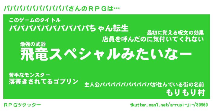 | 男性向けラノベタイトル風あだ名 | 『パパパパパパパパパパアートオンライン』 |