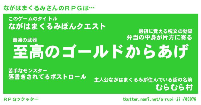 | 男性向けラノベタイトル風あだ名 | 『ナガハマクルミアートオンライン』 |