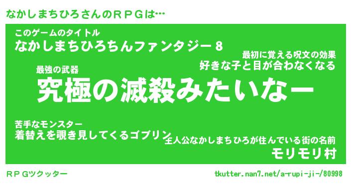| 男性向けラノベタイトル風あだ名 | 『ナカシマチヒロアートオンライン』 |