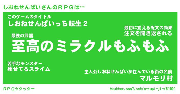 | 2回繰り返すあだ名 | 『しおしお』『ししおお』『ぬらぬら』 |