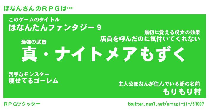 | 胡散臭い通販商品みたいなあだ名 | 『億万長者になれる霊験あらたかなお札…その名も「ほなん」』 |