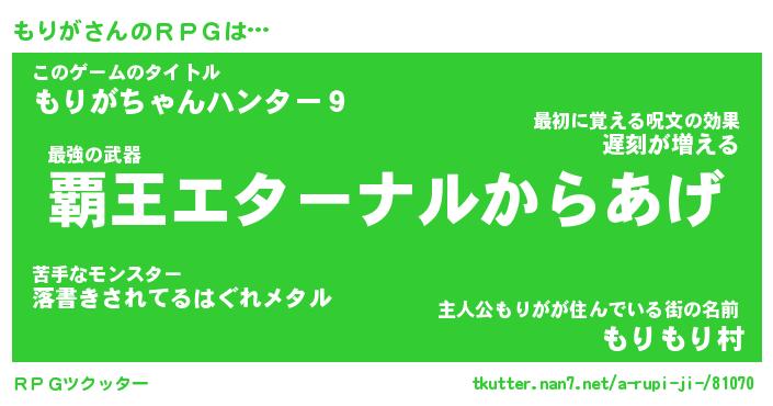 | 男性向けラノベタイトル風あだ名 | 『モリガアートオンライン』 |
