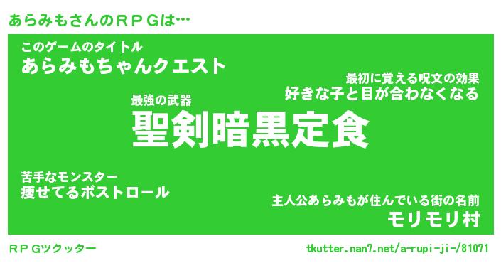 | 胡散臭い通販商品みたいなあだ名 | 『必ず成功する水晶球…その名も「あらみも」』 |