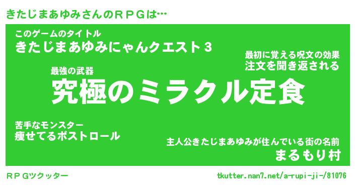 | 恥ずかしいあだ名 | 『プリティーきたじまあゆみ』『きたちん』 |