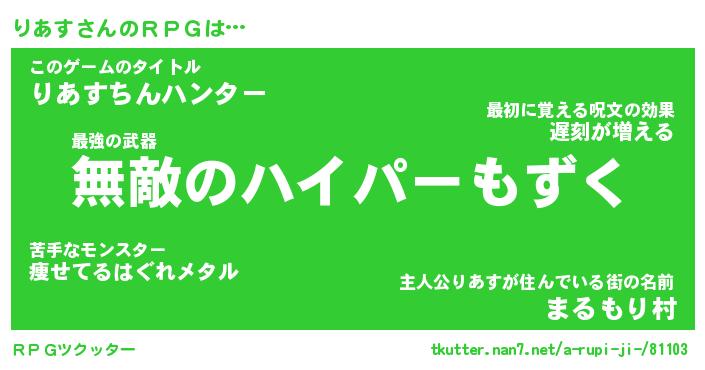 | ヘコむあだ名 | 『りあにー』『なまこ酢』『りあっ子』 |
