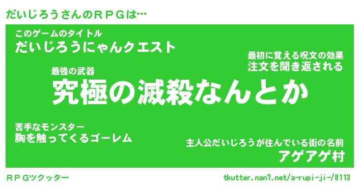 | ファンタジー風あだ名 | 『ダイフェル』『エターナルダイジロウー』 |
