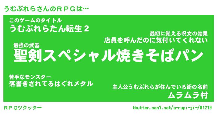 | 伝説のあだ名 | 『伝説の竜騎士うむぶれら』 |