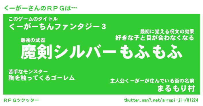 | ファンタジー風あだ名 | 『クーフェル』『エターナルクーガーー』 |