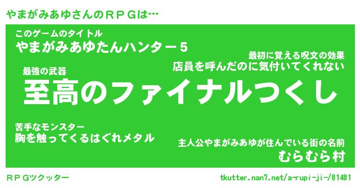 | 伝説のあだ名 | 『不死鳥の竜騎士やまがみあゆ』 |