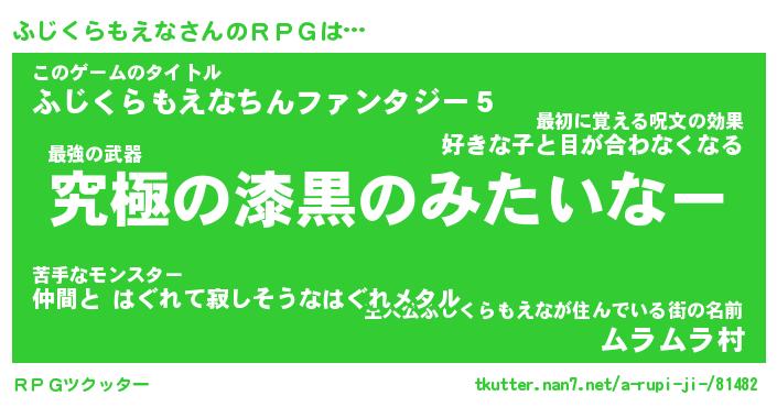 | 胡散臭い通販商品みたいなあだ名 | 『モテモテ間違いなし霊験あらたかなお札…その名も「ふじくらもえな」』 |