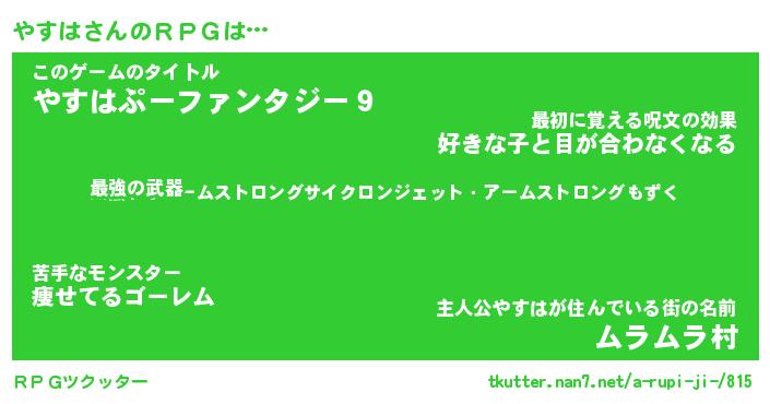 | ファンタジー風あだ名 | 『ヤスフェル』『エターナルヤスハー』 |