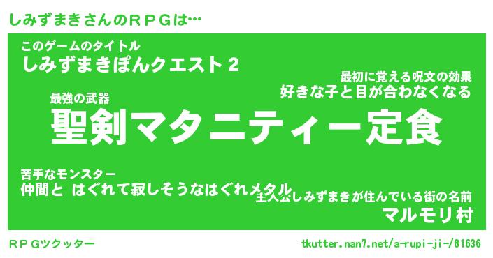 | 男性向けラノベタイトル風あだ名 | 『しみずまきの憂鬱』 |