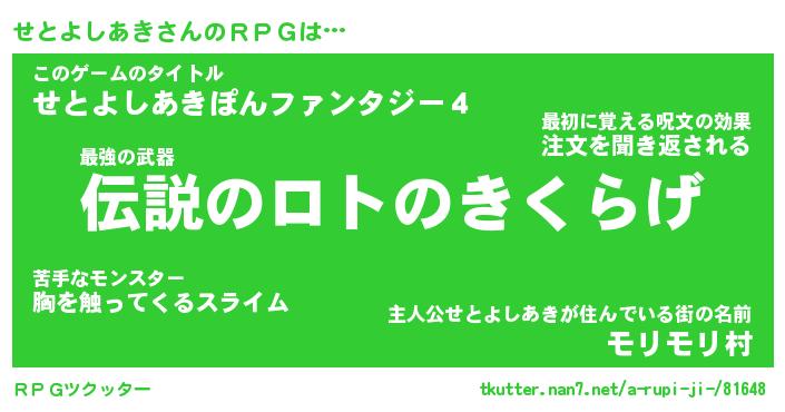 | 伝説のあだ名 | 『不死鳥の竜騎士せとよしあき』 |