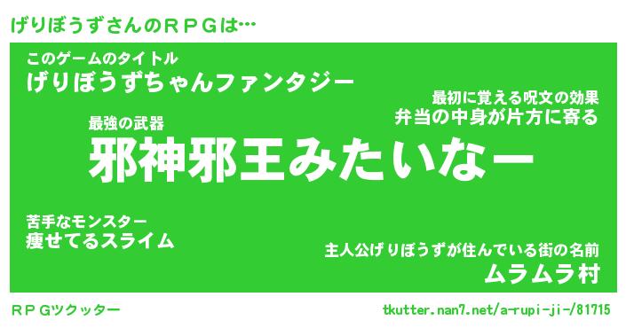 | ファンタジー風あだ名 | 『ゲリフェル』『エターナルゲリボウズー』 |