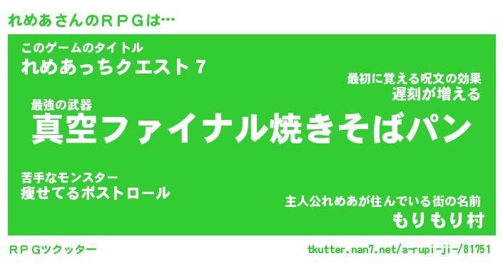 | ヒーロー風カッコイイあだ名 | 『スーパーレメア』『ウルトラれめあマン』 |