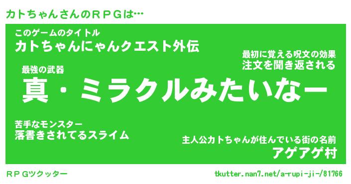 | 男性向けラノベタイトル風あだ名 | 『カトチャンアートオンライン』 |