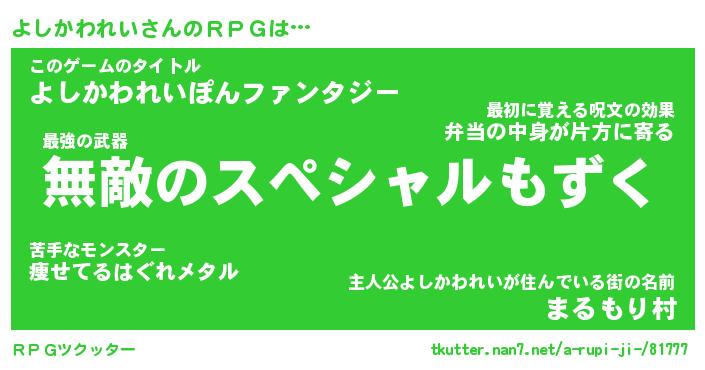 | 胡散臭い通販商品みたいなあだ名 | 『億万長者になれるブレスレット…その名も「よしかわれい」』 |