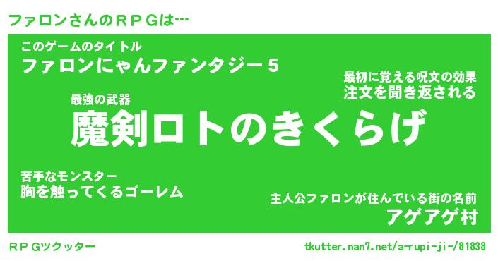 | ファンタジー風あだ名 | 『ファフェル』『エターナルファロンー』 |