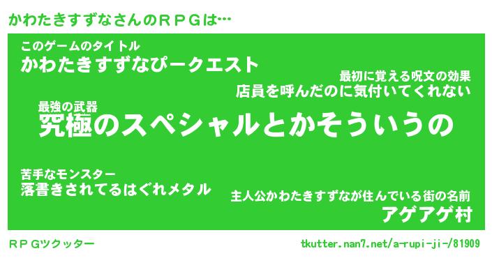 | ツイッター | かわたきすずなさんのツイッターID『katatsumuri_man』 |