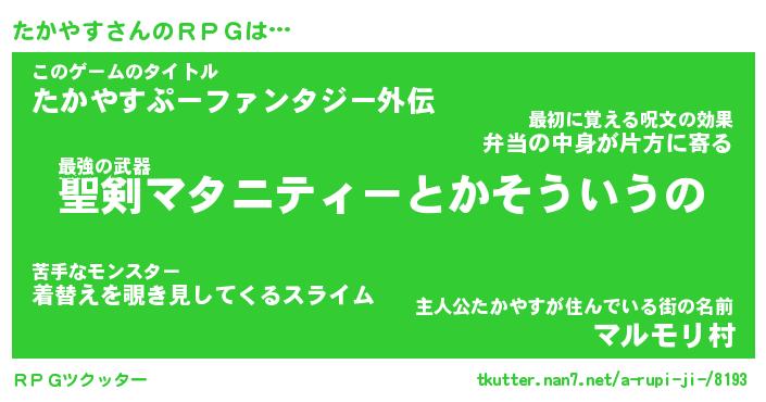 | ファンタジー風あだ名 | 『タカフェル』『エターナルタカヤスー』 |