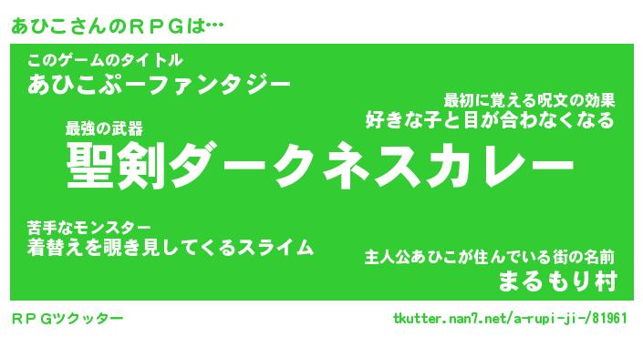 | ファンタジー風あだ名 | 『アヒフェル』『エターナルアヒコー』 |