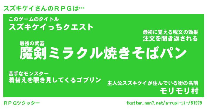 | ファンタジー風あだ名 | 『スズフェル』『エターナルスズキケイー』 |