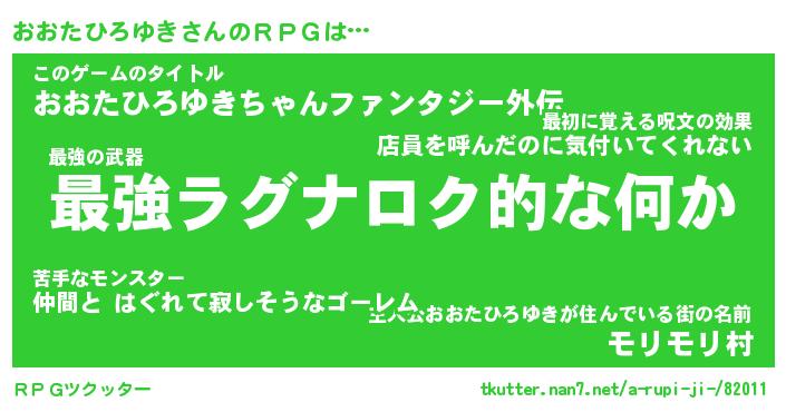 | 女子向けラノベタイトル風あだ名 | 『おおたひろゆき姫と円卓の騎士』 |