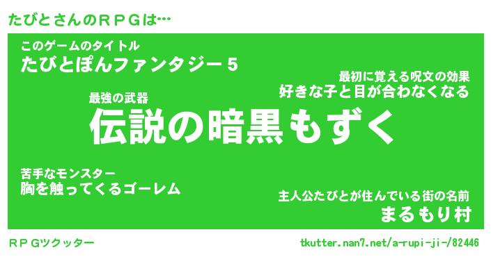 | 男性向けラノベタイトル風あだ名 | 『たびとの憂鬱』 |