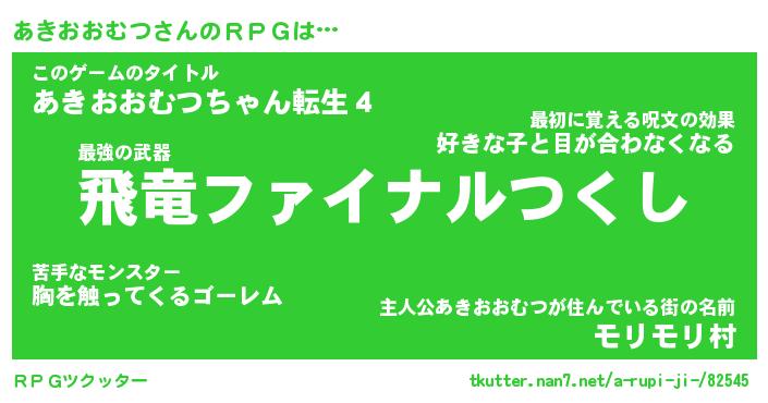 | 伝説のあだ名 | 『封印されし竜騎士あきおおむつ』 |