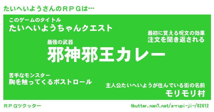 | 男性向けラノベタイトル風あだ名 | 『タイヘイヨウアートオンライン』 |