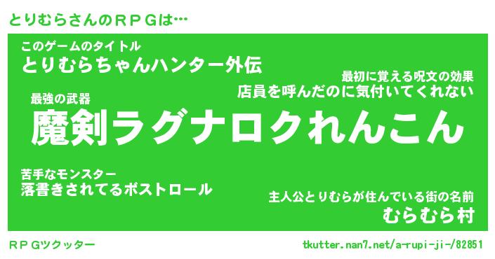 | 男性向けラノベタイトル風あだ名 | 『とりむらの憂鬱』 |