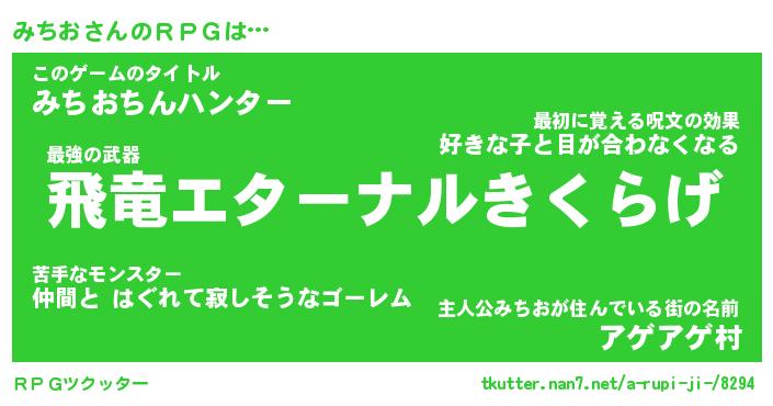 | 男性向けラノベタイトル風あだ名 | 『ミチオアートオンライン』 |