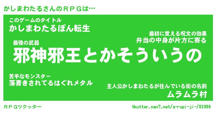 | 胡散臭い通販商品みたいなあだ名 | 『億万長者になれる水晶球…その名も「かしまわたる」』 |
